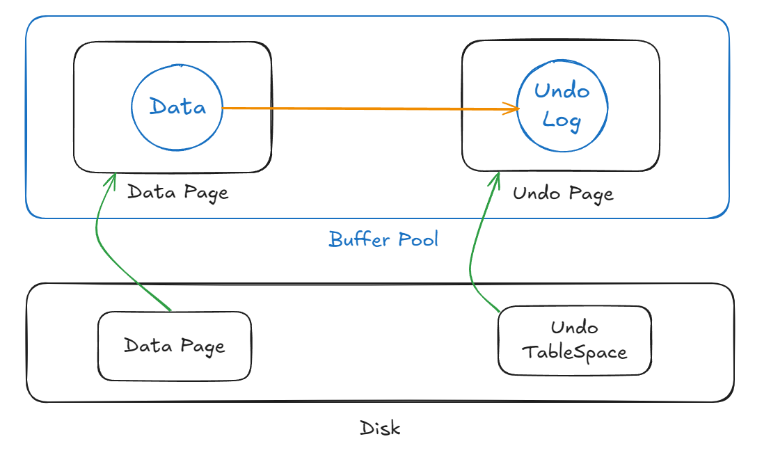 이 undo log 또한 disk Undo TableSpace에서 Buffer Pool로 로딩