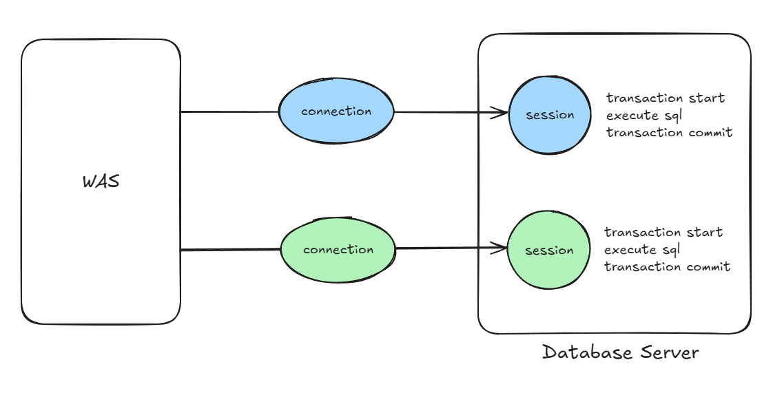 ● 트랜잭션은 DB 세션 단위로 관리되는데, 이 세션은 커넥션을 통해 생성된다.