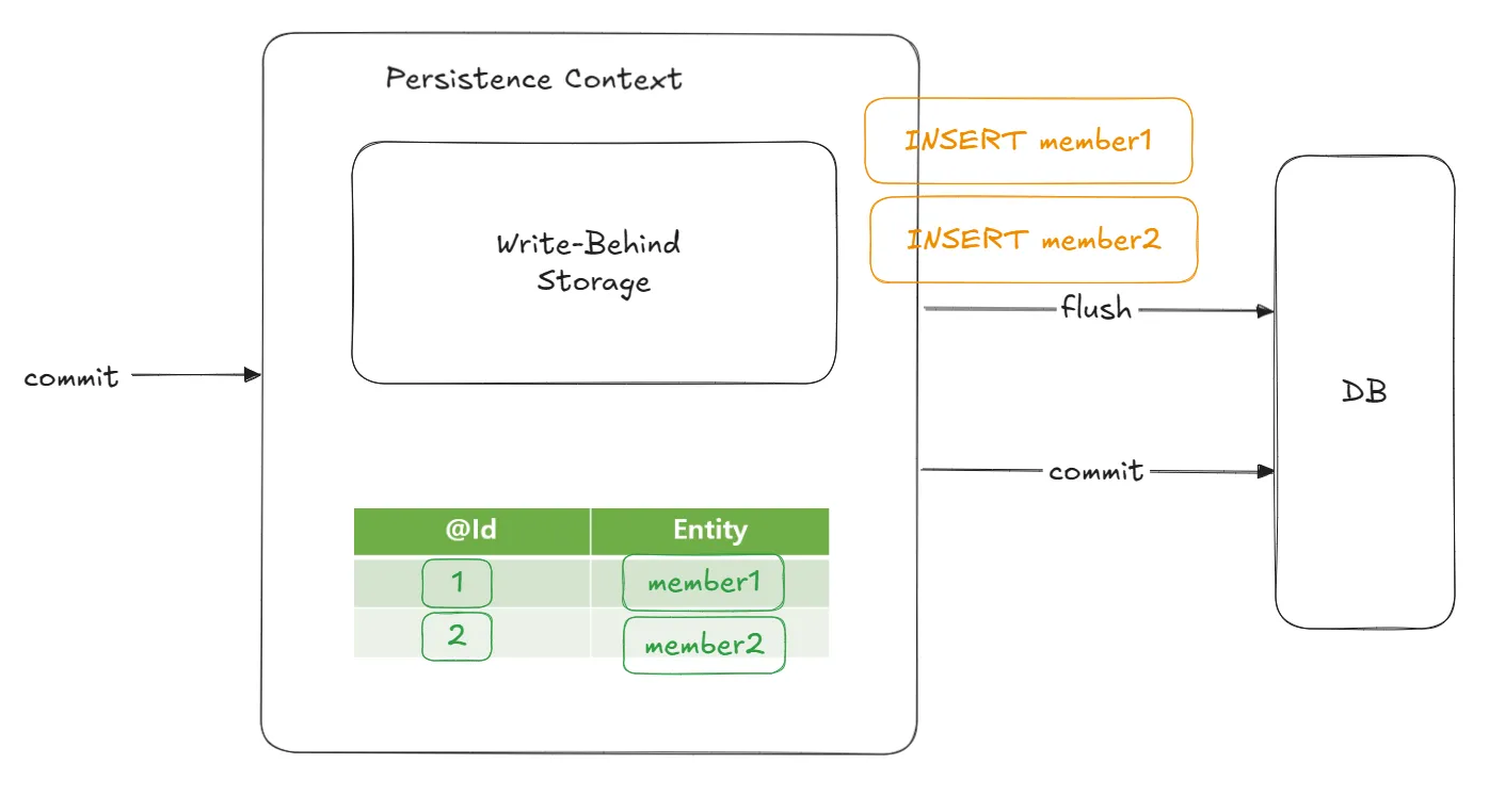 ● JPA는 트랜잭션 단위의 일관성을 위해 commit 직전까지 flush를 지연시키는 전략을 취한다.